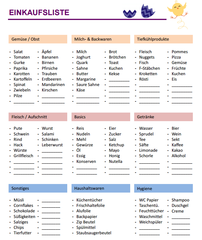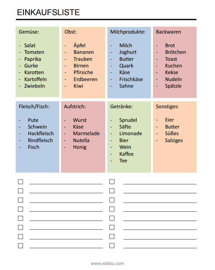 Of course, if you want things to look pretty, you can also download prepared lists. I have found a wonderful German website called Xobbu where you can download to-do lists. The owner, Nadine has a page with beautiful German shopping lists for you to download. The following two screenshots give you an idea about what you can download when you click on her download links: